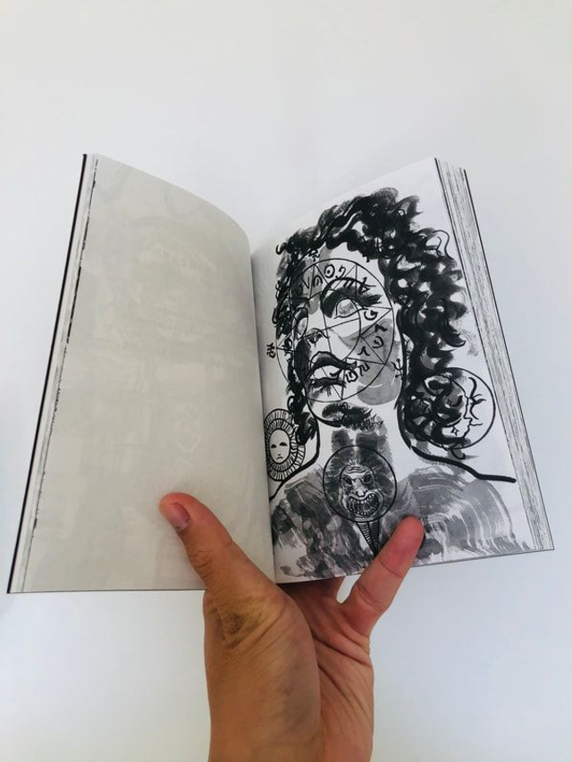 In his artist’s book 'My Body Is a Reincarnated Population', Helsinki-based, Hong Kong-born artist Oscar CHAN Yik Long gives form to a pantheon of reincarnated souls embedded within him. Through ink paintings and distilled capsule texts, he maps a deeply personal cosmology of memory, trauma, and reconciliation.